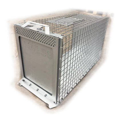 Påkopplingsburen kopplas ihop fällan för säker förflyttning av katten från fällan.